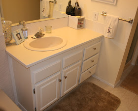 We have a few drip spots that dried up on us but overall Terry and I are very happy with the new look of our bathroom cabinets.