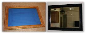 So Terry's wonderful cousin Amy gave us some items for the house she no longer needed. They were awesome but gold in color and didn't match our decor. So we grabbed one of our favorite go to products called Rustoleum All Surface Spray Paint in High Gloss Black. First we cleaned all of the items with a product called TSP and let it dry. We have been using this product on the walls, doors and molding to help get all the years of dust, dirt and grime off. It really works well and is a pretty easy step. Anyways, after we cleaned we applied a couple coats of the Rustoleum. I don't have photos of all the stuff we spray painted but here are a few. We got the candelabra in the below photo. The previous homeowner left the fireplace screen and tools and then their is the before and after of the mirror we recieved. What do you think?