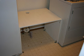 After we finished all of that painting we decided that we wanted to rebuild our laundry room wash sink and transform it into a place we can put our litter box for our three crazy cats. In the past it was in our formal living room....NOT an ideal place for a litter box. We tried fitting it underneath our old wash sink in the laundry room but it was too wide/tall. So my genius husband and father in law ended up purchasing a new larger wider wash sink. They then designed and built a taller stand for it to sit on. Leaving room for the litter box underneath it. I am just so happy about this I could scream. It was such an eye sore for me in the living room.