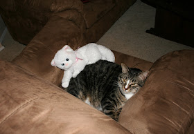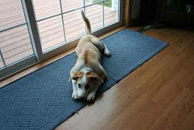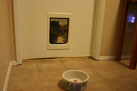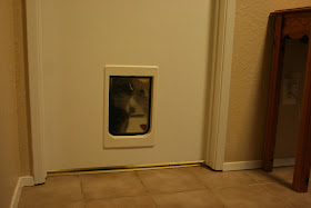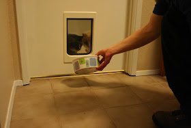 The real test was going to be how our cats reacted. They have both been around dogs before and did OK tolerating them. They just don't like dogs that bark at them. So the day we brought Coop home we put the cats in our bedroom and let them sniff each other through the door. We bought a few books on puppies and training and decided that we would use the tethering technique and keep him by our side at all times for a few weeks. This also helps with potty training since they did said that Cooper was working on that. Plus its good training to teach the dog that he needs to stay by us and not wander around the house. We are teaching him that we are the Alpha's and the ones in charge, not him. After keeping the cats in the bedroom for a few hours they met for the first time and the cats were OK. They were very cautious of Cooper and were doing the slow walk and stair methods at the dog. Not quite sure what to think of him. The whole time cooper just sat and watched them. He didn't jump or whine or bark at the cats at all. They are pretty much use to him. Butch our cat is very curious and wants to play with him but Cooper of course plays too hard so he will eventually hiss at cooper. Barley our other cat for the most part is just staying away and spending lots of time in rooms that Coop is not in or in his cat stand. He does come out when the Cooper is sleeping.