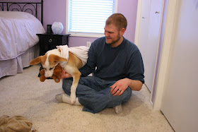 On Saturday March 10th we drove up to Bellingham to meet him and see if he was the perfect fit for us! As soon as Terry and I walked through the door Cooper ran up to us and was just so happy and excited to meet us! I crouched down and he ran up in between my legs and gave me tons of kisses and gentle hugs. My heart instantly melted and I knew right then and there we had found our perfect match and Cooper had found his forever home with us!