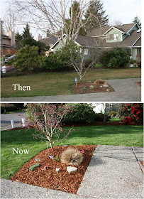 We finally finished putting bark in our flowerbeds! It took 3 loads in our little truck but we got it done and all I can say is what a difference a little bark can make! Our yard looks so fresh and clean and new! We have also finished pretty much all of our spring planting and now we are just waiting for things to bloom! As you can see some of it already is. Love seeing all the colors popping up. Makes me so happy and everything smells so good! Here are some photos of how the yard previously to looked to how it looks now. Some of these photos were from how the house was when we bought it last year.