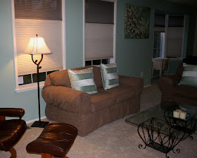 Here is a before and after shot. What do you think? I really LOVE the new look! I was really torn about painting them the dark chocolate brown and was thinking that we should paint them white but I think we would have made a huge mistake painting them white and I am glad I listened to the hubby! The dark color matches all of our other furniture in the family room. We also added those silver pulls on to the drawers and doors. We ended up getting a box of 10 pulls for $10 at our local Ace Hardware since they price match!! The best thing about this project is that the total cost of painting this was just the price of the pulls $10!! Since we already had leftover paint and primer from the guest bathroom redo! We love projects that end up costing hardly nothing :)