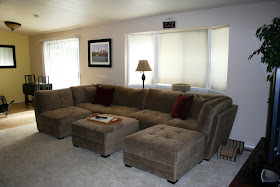 Recently we have been looking around for a sectional couch for our family room. In the past it was always harder when we had guests over with our old set up because it we really only had room for four people on the furniture. One in the chair and three tightly fit on the couch. Then we would have to bring out folding chairs or bar stools etc. And the other thing we didn't like is you couldn't cuddle side by side and watch a movie on our old couch!