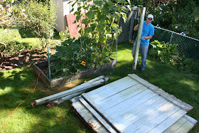 Over the past month we have been doing research on who had the best deal on vinyl fencing and our lovely local Costco won! We were able to get a box of 3 panels for $199 a box and each box covered about 24' and needed two to get the entire fence done.  So our crazy behinds ended up scheduling our fence rebuild with our neighbor on the hottest weekend of the summer. We took off Friday from work and were done by Sunday morning. It was so hot that we were only able to work in the mornings and evenings! I felt so bad for Terry. He had sweat pouring off of him! He is such a hard worker.