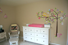 From all the painting we did last year we didn't want to paint her room yet again and were fine with keeping it the oatmeal color. The theme we decided to go with was "Owls and Woodland Friends". So be prepared for an owl overload :) Here is how her room looks now!!